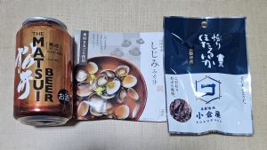 お酒とおつまみ、お味噌汁をいただきましたm(_ _)m楽しみにいただきますm(_ _)m(*^^*)⟡.·*.